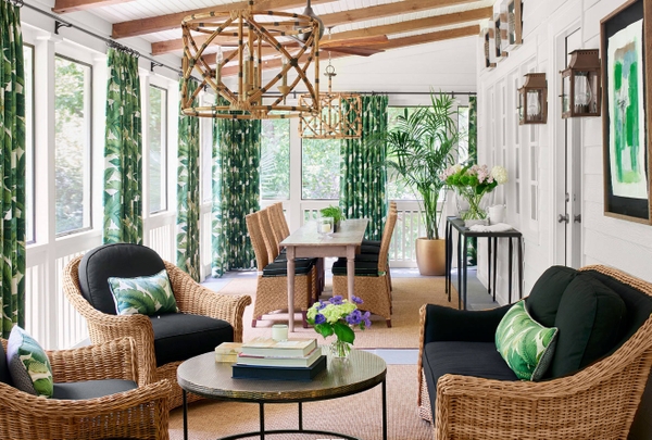 Ánh nắng mùa hè thường gay gắt nên loại rèm phù hợp là loại rèm cản nắng, được làm từ các loại vải dày dặn. Tuy nhiên, bạn cũng cần chú ý đền màu sắc của rèm cửa, tránh các màu nóng như cam, đỏ, vàng, hồng…Màu sắc phù hợp với mùa hè vẫn là những màu lạnh như xanh lá cây, xanh nước biển, xám, xanh nõn chuối…Rèm cửa với những họa tiết lá cây theo phong cách tropical cũng là một gợi ý hay cho mùa hè này.