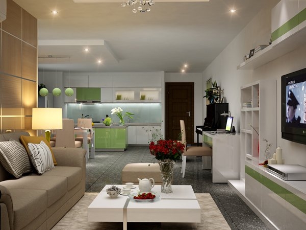 Với các căn hộ chung cư, phòng khách đa số sẽ được thiết kế sẵn theo phong cách hiện đại. Kiểu phòng khách này có diện tích cũng khá khiêm tốn. Tuy nhiên, vì thường được gộp với phòng bếp và phòng ăn để trở thành một không gian sinh hoạt chung nên xét về tổng thể sẽ khá rộng rãi và thoải mái.