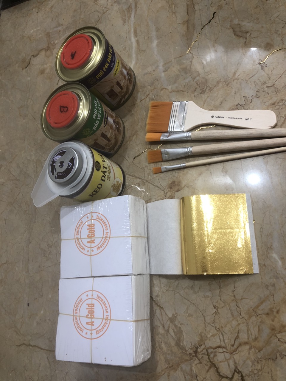 Combo 1000 A gold keo 24k kèm phụ kiện dành cho gỗ, kim loại, nhựa ( chổi cước S7, bút cước S4. S11x2)