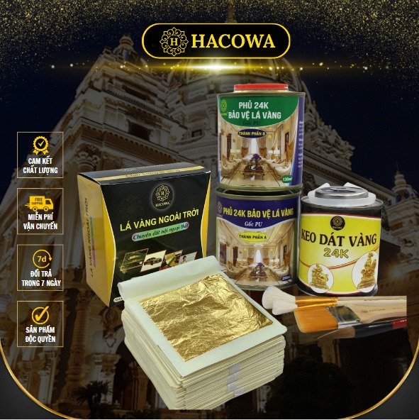 Combo 500 lá vàng ngoài trời kèm đủ phụ kiện keo, phủ, bút chổi