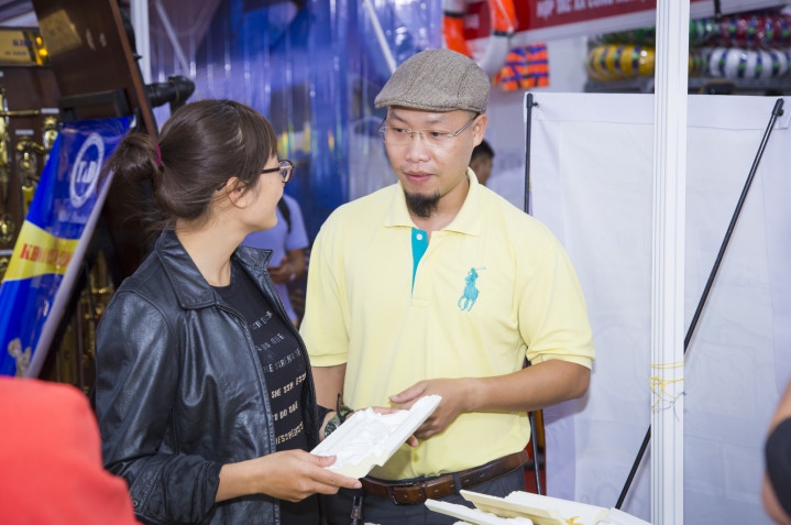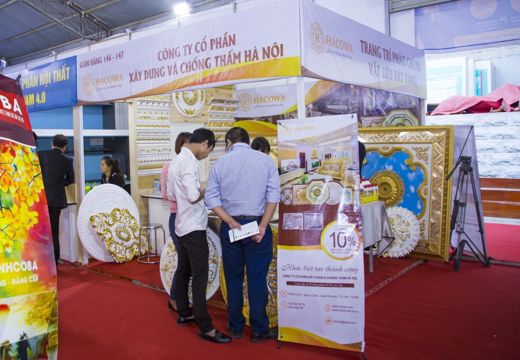 Điều khác biệt mà Hacowa mang đến triển lãm lần này là ngoài việc tham quan mua sắm, khách hàng còn được trải nghiệm vẽ nhũ dát vàng ngay tại gian hàng. Qua đây giúp khách hàng hiểu thêm về quá trình cho ra những sản phẩm phào chỉ, mâm trần vừa đẹp, vừa sang trọng như thế nào. Ngoài ra, chúng tôi cũng bày bán các nguyên vật liệu để vẽ nhũ, dát vàng: lá vàng, keo dán, bút lông, nhũ vàng…để khách hàng mua về tự gia công các sản phẩm tại nhà. Cũng tại triển lãm lần này, Hacowa phát hiện ra vẻ đẹp tiềm ẩn của lá vàng khi dát lên chất liệu kính, mang lại vẻ sang trọng tuyệt đối cho sản phẩm trang trí nội thất bằng kính.
