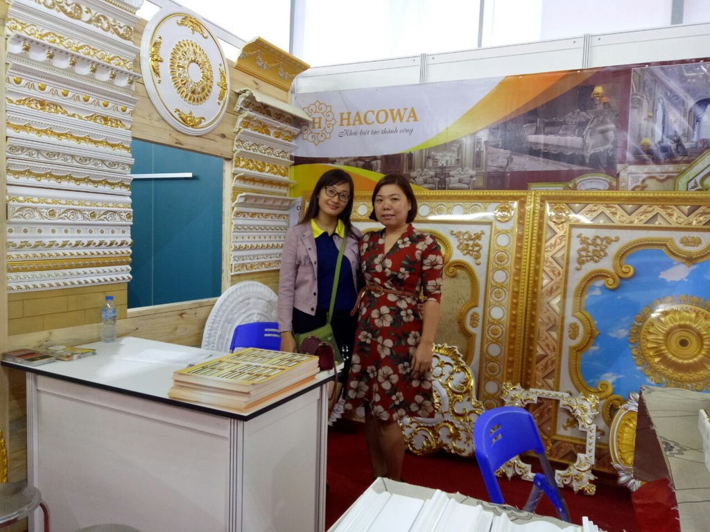 Lần đầu tiên Hacowa tham gia triển lãm có quy mô lớn, quy tụ những thương hiệu lớn đến từ nhiều quốc gia khác nhau nên có thể chưa chuyên nghiệp được như các công ty lớn khác. Thế nhưng, ngay từ khi đăng kí tham gia, Hacowa đã xác định đây chính là cơ hội để quảng bá hình ảnh công ty, đưa những sản phẩm của Hacowa đến gần với nhiều người hơn, cũng là dịp để giao lưu học hỏi công ty bạn. Để chuẩn bị tốt nhất cho triển lãm Vietbuild lần 3 năm 2017 này, lãnh đạo công ty đã quyết định dốc toàn bộ nhân lực để hoàn thành các sản phẩm từ dát vàng cho đến vẽ nhũ mang đến triển lãm, giúp quý khách hàng có nhiều sự lựa chọn hơn cho ngôi nhà của mình.