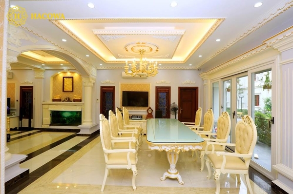 05/06/2017 Đăng bởi: Hacowa CompanyTại biệt thự của mình, ông Hân đã lựa chọn việc kết hợp các họa tiết trang trí lạ mắt khiến cho không gian thêm vẻ choáng ngợp, xa hoa, tạo nét riêng biệt bởi chất liệu từ thạch cao và phào PU.
