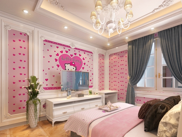 Ngoài ra, việc sử dụng rèm cửa, thảm trải sàn, tranh treo tường, đèn ngủ cũng cần được lựa chọn theo phong cách tân cổ điển. Tất cả tạo nên một thể thống nhất cho không gian phòng ngủ của bé gái.