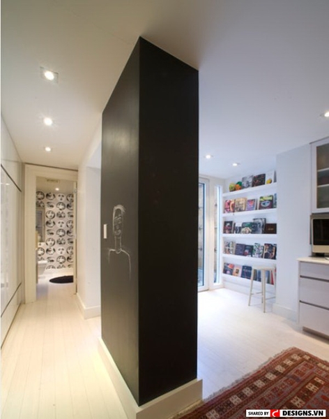Có nhiều cách để trang trí hành lang, và sơn một tấm bảng đen dài ở hành lang cũng là một gợi ý hay. Đây là nơi gia chủ vẽ trang trí các họa tiết đẹp mắt hoặc gắn những bức ảnh của gia đình.