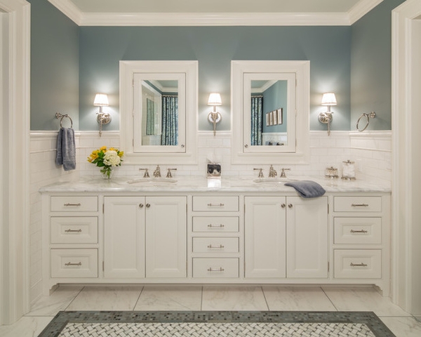 Khi nói đến những không gian trang trí, phòng tắm thường được bỏ qua vì nhiều chủ nhà nghĩ phòng tắm thường là một không gian chỉ cần chức năng. Nhưng bạn sử dụng phòng tắm của bạn mỗi ngày, vậy tại sao không thêm cho chúng một ít phong cách? Với việc nhấn sắc nét màu trắng ở gương và phần tủ đồ nội thất, không gian phòng tắm của bạn đã trở nên quyến rũ.