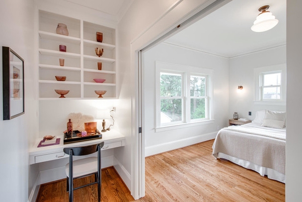 Trong không gian nhỏ, bạn có thể sử dụng màu sắc để mở rộng hơn. Ví dụ, để làm cho các cửa sổ và cửa ra vào có diện tích lớn hơn, điều chỉnh nó sắp đặt với những khung viền màu trắng cỡ lớn. Trong phòng ngủ này, viền cửa sổ và cửa ra vào có nẹp bo rộng đến 6 inches, cho cảm giác cửa sổ và cửa đi trông lớn hơn nhiều so với thực tế. Ngoài ra ván chân tường của căn phòng với độ rộng đến 8 inches, điều này khiến không gian có cái nhìn rộng rãi hơn, ngay cả việc sơn màu tường đậm. “Sắp đặt màu trắng xuất hiện trong một không gian phòng chúng tôi, nó làm nổi bật và gây chú ý chúng tôi ngay lập tức. Những màu khác, nó chỉ hòa vào không gian và gây mờ nhạt” chủ nhà nói. Cho dù mục đích gây sự ấn tượng, lạ mắt hay chỉ là những màu sắc bình thường, tất cả sự sắp đặt đó khiến một căn phòng trở nên hoàn thiện.