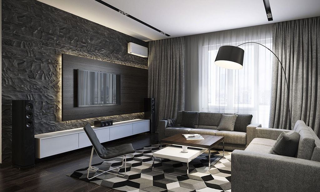 Những gam màu trầm, sẫm được khá nhiều chủ nhà yêu thích vì tính thời thượng, hiện đại, quý phái và khả năng tạo chiều sâu cho phòng khách. Thường thì tông màu trầm của gỗ hoặc xám đen kim loại là hai màu được ưa chuộng hơn cả.